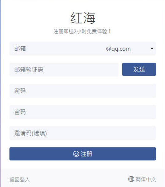 1. 注册并登录红海。点击注册红海【获得2小时免费使用】。如果您没有收到验证码,请检查您的垃圾邮件。