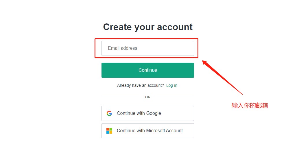 2.打开https://chat.openai.com/auth/login链接并使用您自己的电子邮件地址注册帐户