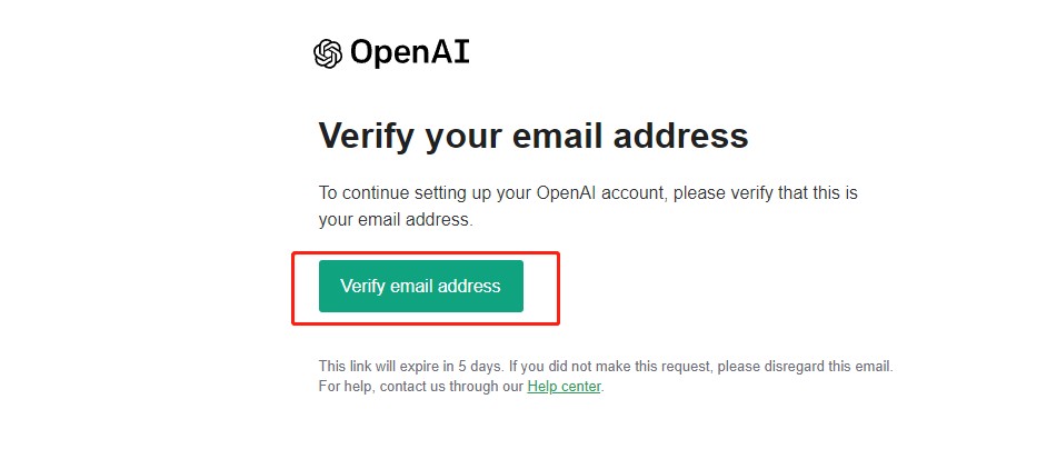 3. 打开您的邮箱查看OpenAI账户验证邮件,点击验证按钮完成邮件验证。