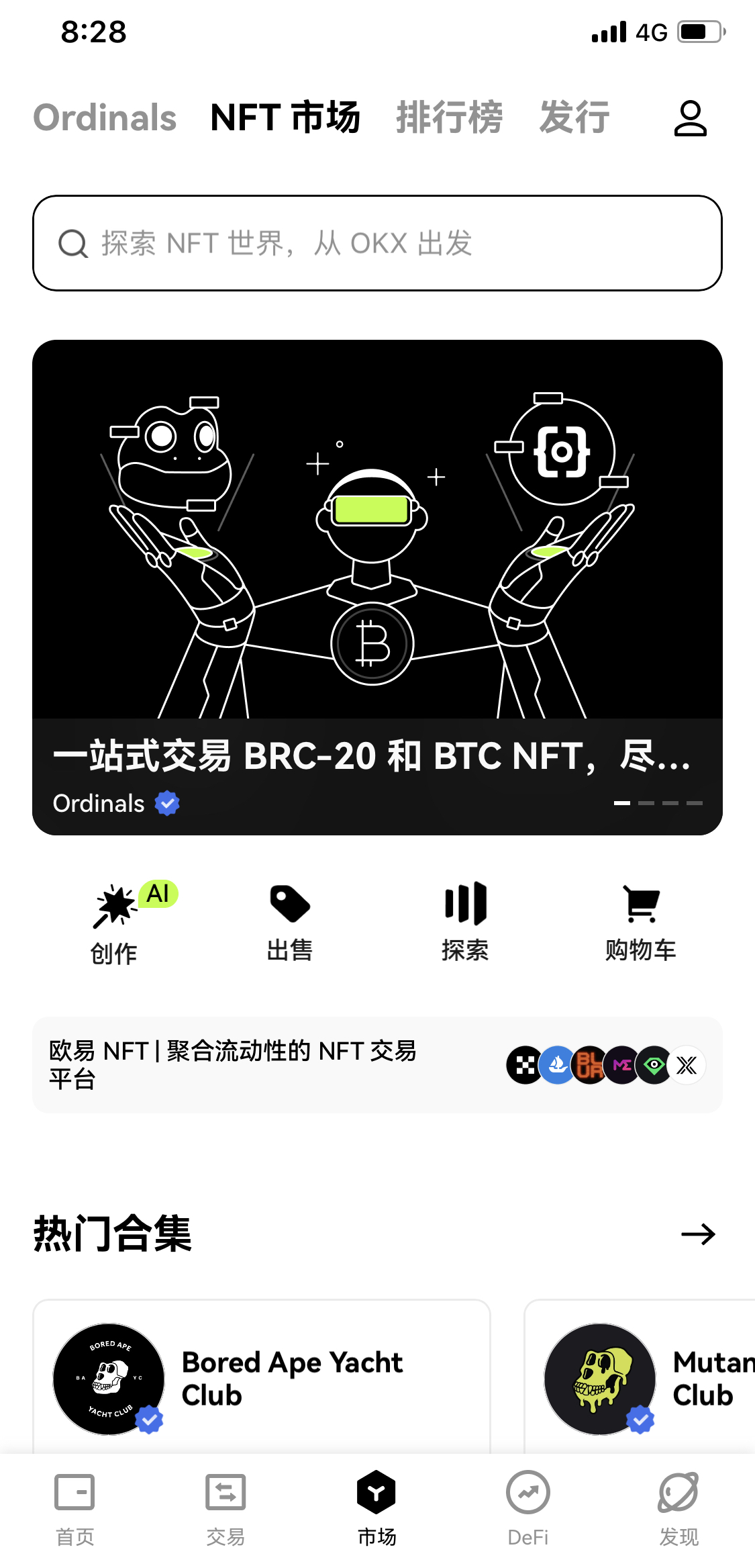在Oyi 的NFT 市场上创建和交易NFT。
