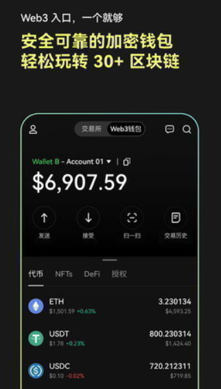 3、币种钱包:全球领先的多链钱包,支持存储数千种数字货币,覆盖99%以上行业币种,为全球用户提供安全的数字资产管理服务。