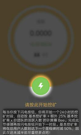 1:与pi币同型号,注册获得BEE币,每24小时点击一次闪电;