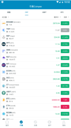 Coinyee交易平台支持比特币、莱特币、以太坊、瑞波币、EOS等数十种数字资产的交易,丰富的交易品种为用户提供多样化的交易选择。