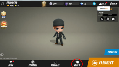 1、道具卡的选择和更换可以在两个界面上进行操作。第一个是游戏主界面。
