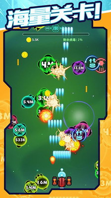 激光不像导弹那么小。对付大面积病毒时,建议选择AOE伤害较大的导弹。丰富的飞行射击元素,搭配激动人心的背景音效