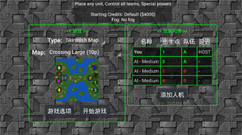 1.全战场多人生存模式,自由组建军队,部署部队,支持保存和加载手游。