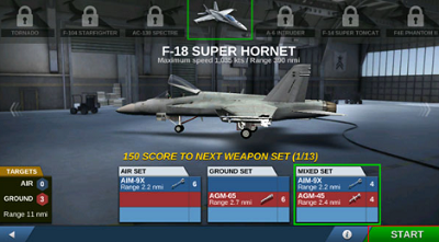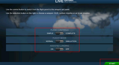 4.下一步是选择战斗机,选择飞机类型和导弹,然后点击“START”开始游戏。