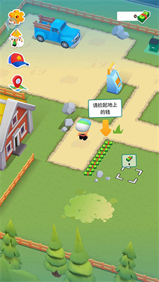 2.进入游戏后,按照系统的引导提示进行操作。我们通过滑动屏幕来控制角色的移动,捡起地上的钱。