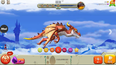 2.玩家一开始只有一条小龙,它是通过在天空中狩猎而成长的。游戏中的宠物需要通过寻找鸡蛋来解锁,而龙则可以用金币购买,以在达到完全成长后解锁下一只。