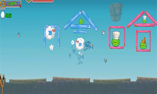 2。游戏很容易操作,不断向后拉,射击鸟并攻击猪。