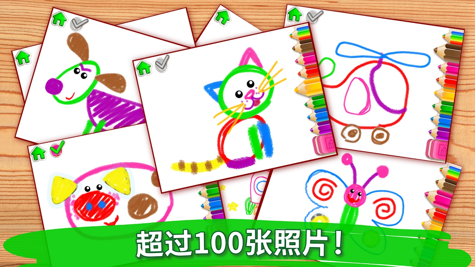 儿童涂涂乐是一个儿童填色和绘画游戏,他们可以与您的家人或朋友分享。图片是宝宝随便拍的。每一幅不同的画都是一个简答创作。开动你的大脑,开始创造吧!