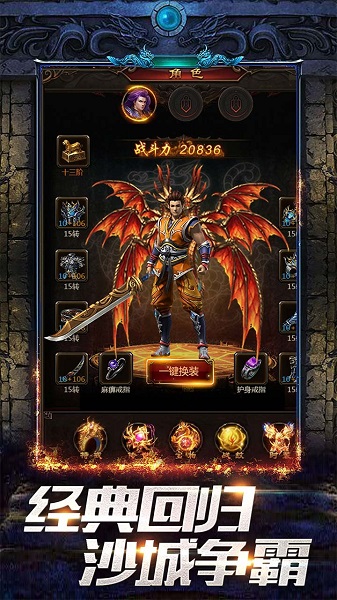 -特色时尚,翅膀,武器,炫酷装备等你来收藏,不断提升你的战斗力。pk爆,血攻沙!