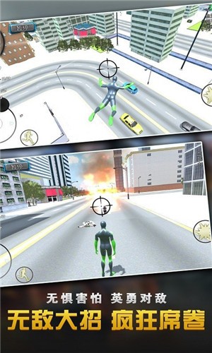 3.精彩的游戏过程,扮演蜘蛛侠的英雄来保护城市的安全。