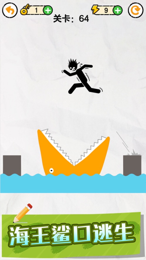 画线救救火柴人关卡全开版游戏不在是一款打打杀杀,游戏中火柴人不再为格斗家,现在游戏中的火彩人变成了一个深陷各种解密和陷阱,玩家需要动动自己的脑子,来解决火柴人的危机,游戏中玩家需要通过画线来解决火柴人的危险,当然游戏中没有限制玩家的操作,但是游戏中的玩家只能一笔画完,游戏有着非常精美的间接,画面十分的精美,有着简简单单的火柴人,当时游戏可以用不简单的线条来组成游戏,游戏的问题也十分的随机有趣,每一关都十分的烧脑,每个关卡都是独特的,独特的任务都需要玩家都需要玩家来操作,每个问题的解决方法操作都十分不同,游戏需要玩家有着非常开放性的思维,玩家需要做出非常优秀的思考。