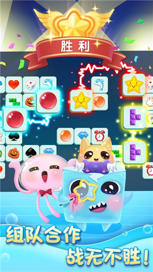 >同步合作同屏消除,3人联机组队pk,你可以一人carry带队上分,也可以三人联手共同抗敌,不同的道具卡组合重叠,携手合作击败对手;