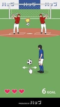 2、玩家需要通过滑动手指将球踢入对方球门;
