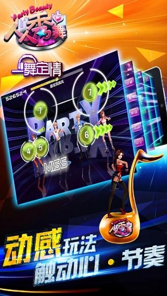 清新靓丽的3D角色、独特时尚的服装风格、酷炫吸睛的舞蹈动作,让你的音乐事业魅力四射、激情四射!最时尚的触屏滑键玩法,超一流的节奏体验,同一首歌的多模式玩法,让你流畅体验震撼全身的指尖节奏!