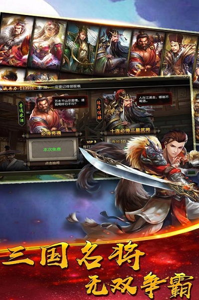 共有100多位三国名将可供选择。每一个都有自己的历史典故和事迹,增加玩家的知识感。