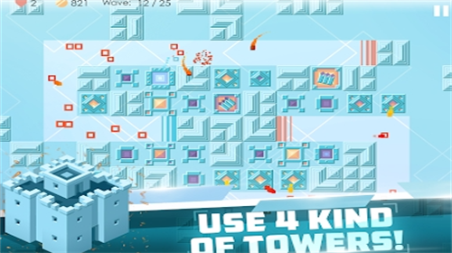 2.有四个不同的战斗塔。收集您的等级金币,升级和购买强大的战斗塔。