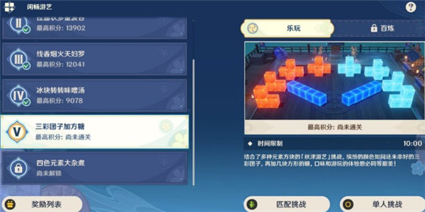 1、选择[四色元素大杂煮],匹配或单人挑战。