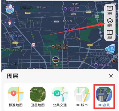 3.点击右边的【图层】,然后点击【3D】夜景。