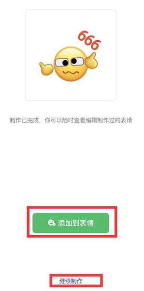 4.最后,你可以选择将其添加到表情中。点击继续制作,还可以管理之前的表情。