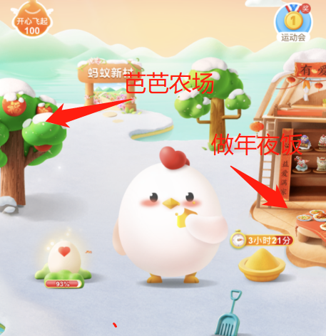 年夜饭的材料需要进入鸡庄园左侧的巴巴农场,受精获取材料。也可以避免一天收一次料,一天可以做两个菜。