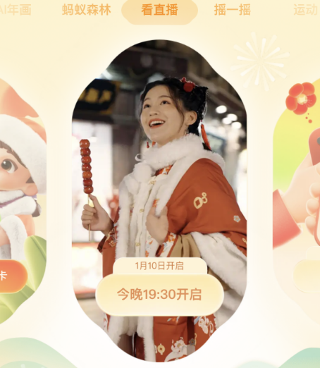 1.1月10日晚上19:00打开,点击“观看直播”,然后从下面的直播进入。看直播一定时间,可以获得祝福卡。