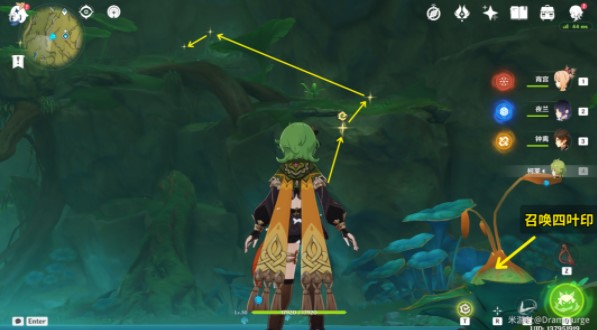 修复完成后,用草元素攻击点亮草元素方碑开路。
