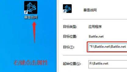 1.右键点击“暴雪之战。Net”客户端,并单击属性;