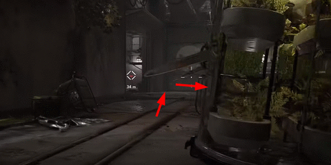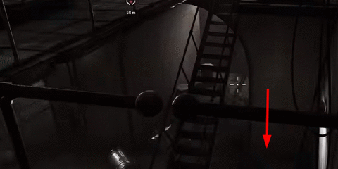 3.来到下图所示的位置后,我们直接从栏杆上翻下来,来到地面。