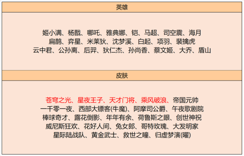 更新英雄:姬小满、杨戳、哪吒、雅典娜、铠、马超、司空震、海月、扁鹊、弈星、米莱狄、沈梦溪、白起、项羽、裴擒虎、云中君、公孙离、后羿、狄仁杰、孙尚香、蔡文姬、大乔、盾山