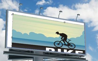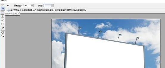 3、此时我们建立透视网格,沿着广告牌各个边沿角点绘制一个网格平面,如图: