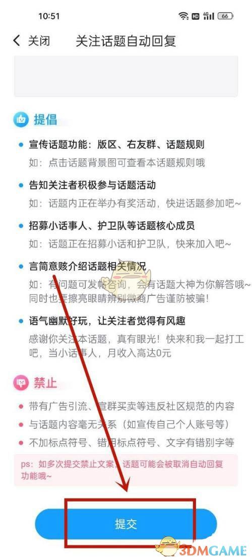 4. 编辑自动回复内容,点击提交。