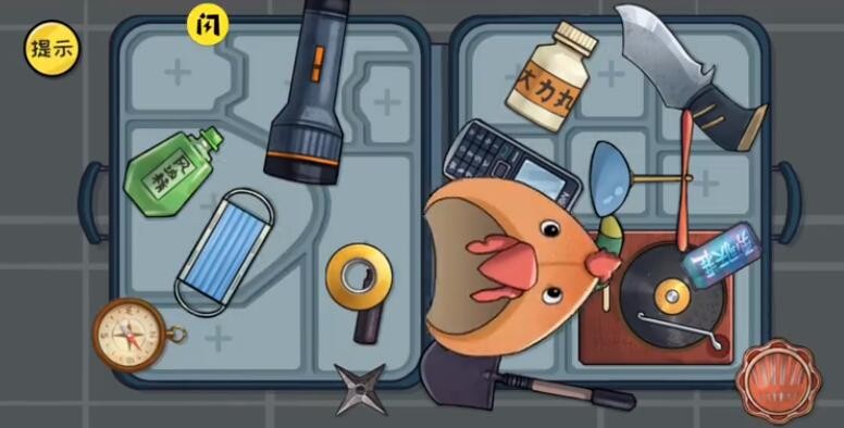5.最后戴上小鸡头盔、面具、手电筒、啤酒、匕首、精油,点击开始冒险