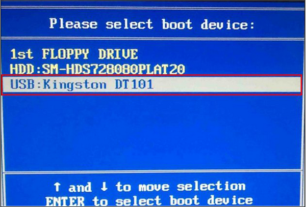 4、等待进入启动项选择窗口,找到“usb”开头的选项,这个选项就是我们的U盘启动选项,如下图: