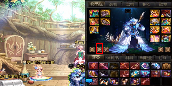 1、进入游戏后,我们点击个人角色背包信息,然后点击下图标记的图标。