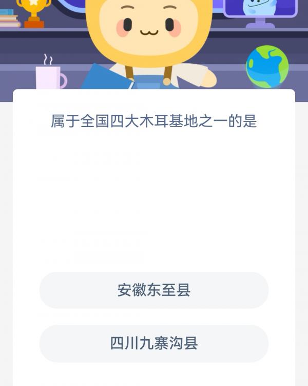 7月5日2022支付宝蚂蚁村的标题是:属于全国四大木耳基地之一的是?安徽东至县还是四川九寨沟县?可能有很多朋友还不清楚。下面小编就给大家带来正确答案分享一下,希望可以帮助到大家。