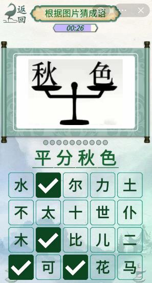 1.玩家首先需要在关卡中知道,本关是根据图片猜成语。