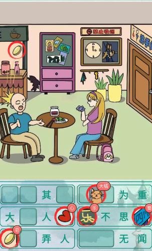1.首先进入游戏,然后找到里面所有的成语。对于这个级别,你需要找到相亲期间的所有成语。