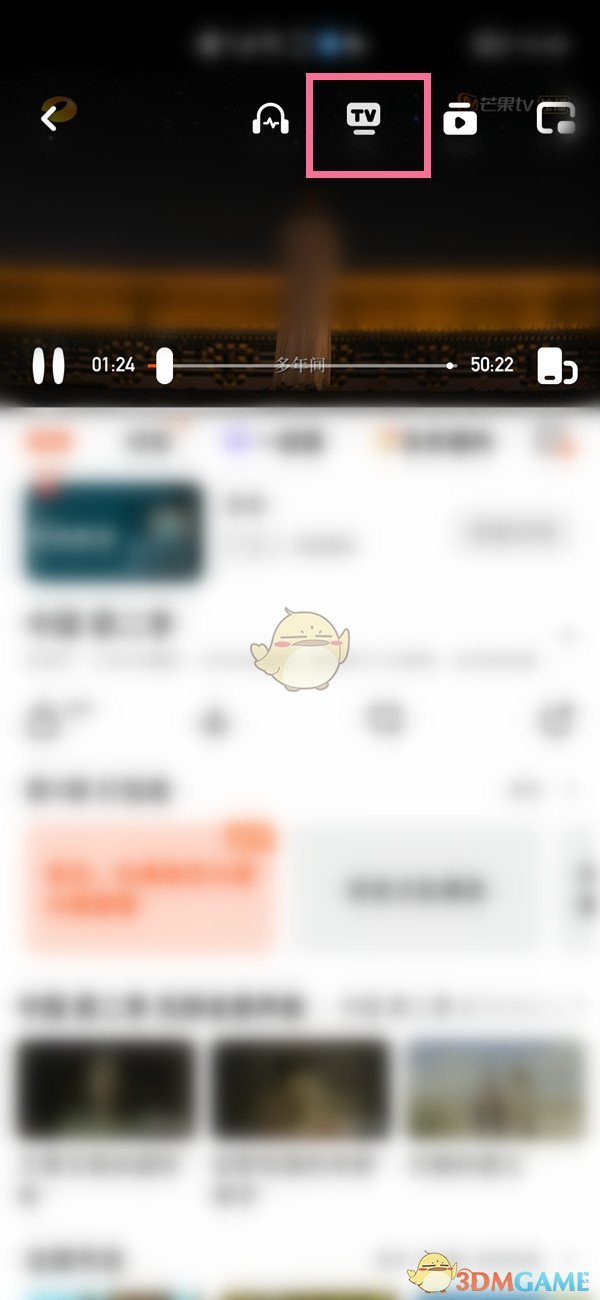 1、打开手机芒果TV,点击视频播放界面的【电视】投影图标。