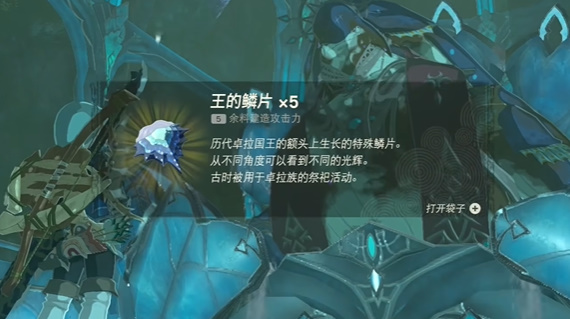 5.找到水滴后,玩家还可以使用王者鳞片将其附加到箭头上,将其射入水滴中,就会出现此物品,然后天空的线索将在此处结束水滴。