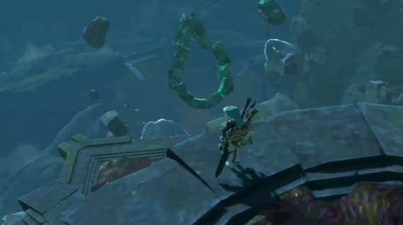 3、到达后需要借助这股水流向上游,到达飞鱼鳞岛。记住,你需要穿上佐拉盔甲,否则你将无法上去。