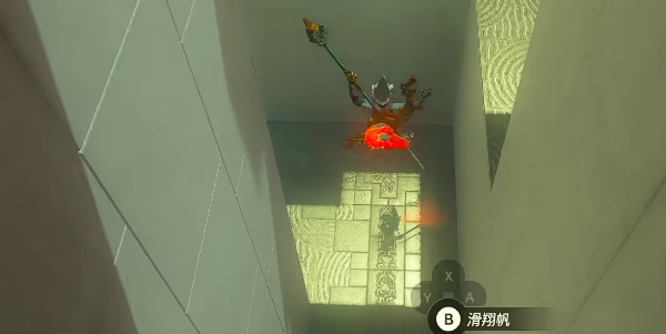 9.将球放入下图中的坑中,即可打开左侧的大门获得滑翔机。