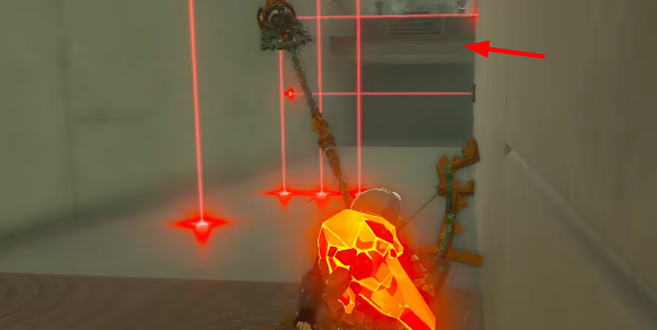 5、我们来到中央位置的楼梯,用终极之手打开门,故意触碰红外线触发机关,然后掉下去。