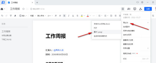 3、第三步,点击“三”图标后,我们会在下拉列表中找到“导出为”选项,将鼠标移至该选项,点击选择“图片”选项