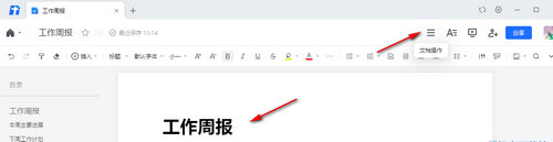 2、第二步,编辑文档内容,然后点击打开页面右上角的“三”图标
