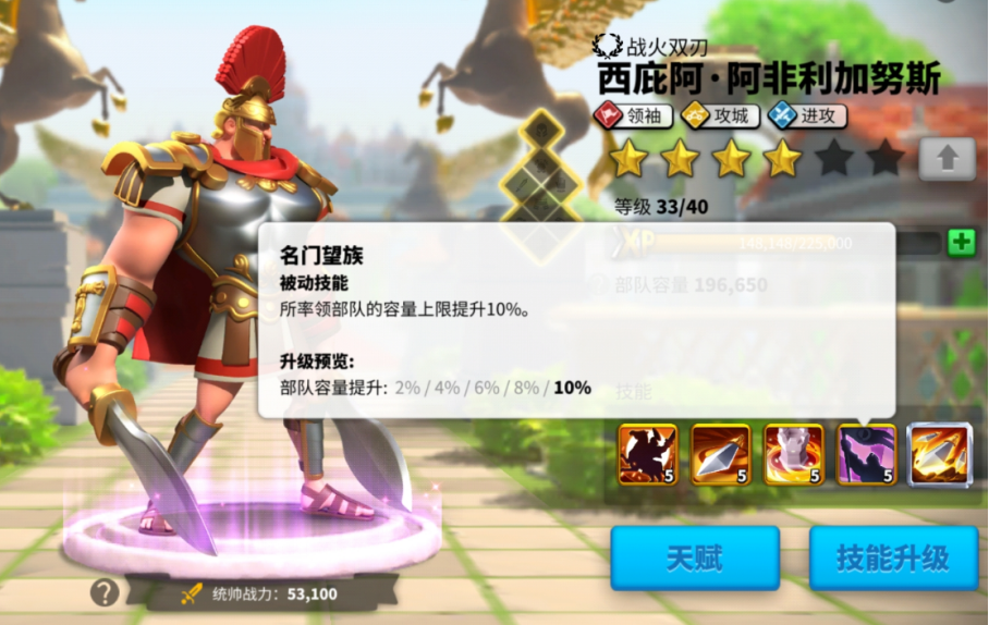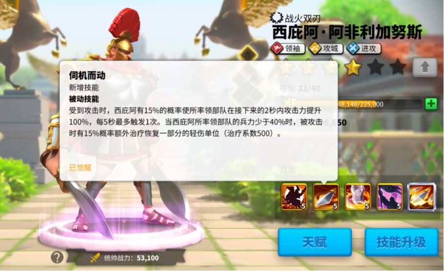 第一个技能是提高西皮奥的生存能力,第二个技能是增加西皮奥的输出能力。有了第一个技能的存在,西庇阿就成为了一个兼具输出和生存能力的将军。