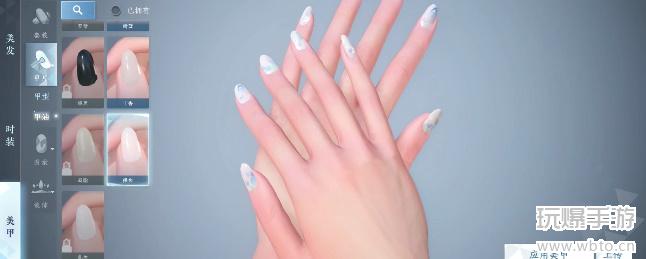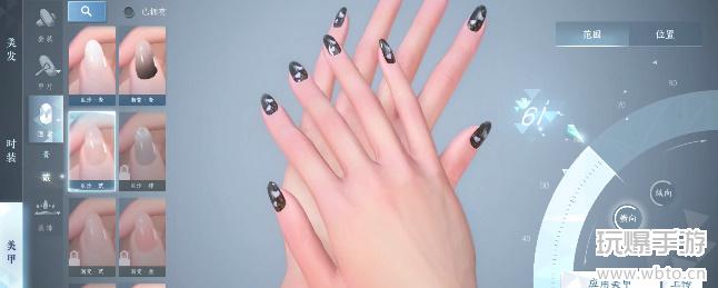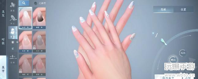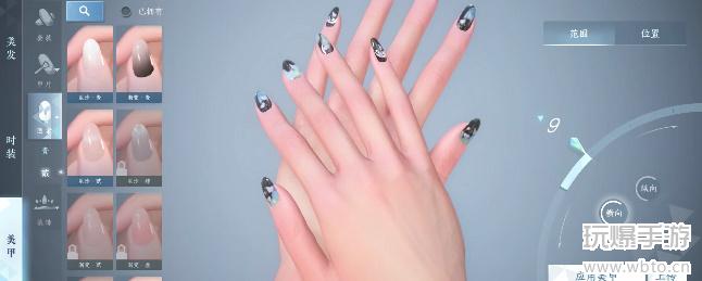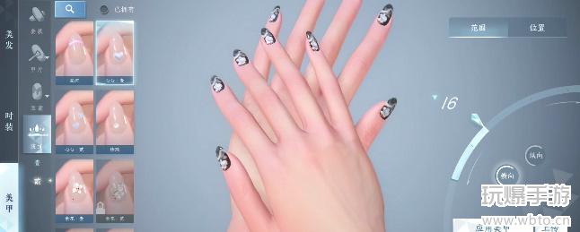 3、选择好指甲油后,还可以选择指甲上的图案。玩家可以选择范围和位置,水平和垂直;