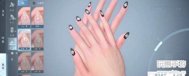 4.最后就是选择装饰,就是用贴纸装饰指甲,装饰一些漂亮的图案。全部装饰完成后,可以点击右下角的【应用美甲】,或者上传。